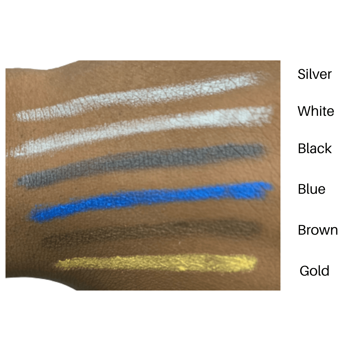 Add instant sparkle with Saffron Metallic Eye Pencil – Silver. This sleek, shimmering silver liner glides on effortlessly for high impact shine and futuristic glam. Use it to highlight, define, or layer over darker shades for a dazzling effect. Lightweight and long-wearing, it’s your ticket to radiant eyes, no smudge, no fade.
